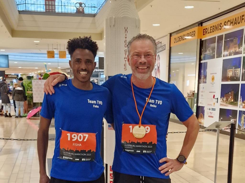 Drei Wochen nach dem Marathonfinish in Berlin ging Martin Rinn in Oldenburg über die Halbmarathondistanz an den Start. Bei widrigen Wetterbedingungen gelang ihm trotzdem eine respektable Zeit. Die 1:57:02 bedeuteten in der Altersklasse Männer 55 den 54 zigsten Platz. Vorher waren Fisha Werede und Heiko Bergmann über 10 Kilometer an den Start gegangen. An die Topzeiten aus dem letzten Jahr kommt Fisha aktuell noch nicht ganz heran. Aber mit 34:51 wurde er Achter im Hauptfeld und Dritter in seiner Alterklasse M 30. Sein Trainer Heiko Bergmann startete ebenfalls über 10 Kilometer und wurde in 47:50 Elfter in der Altersklasse M55. Beide erzielten zudem in Oldenburg Ihre Jahresbestzeit.