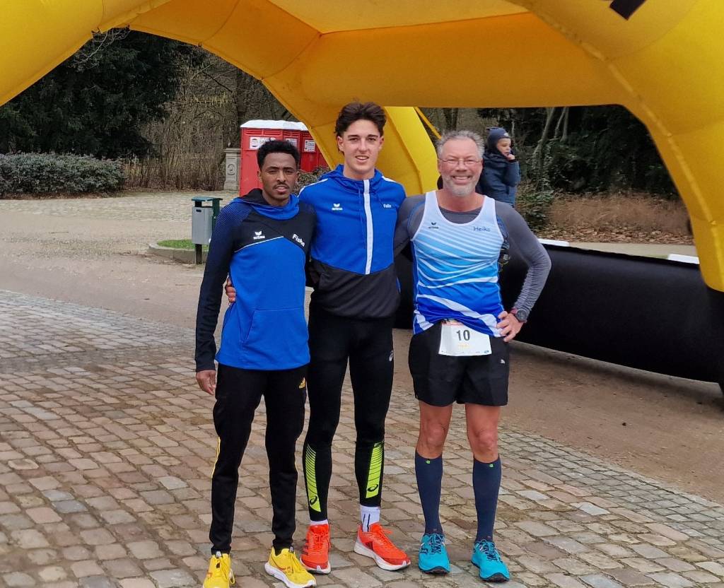 Die kleine Oytener Leistungsgruppe um Heiko Bergmann war am 04.02. beim zweiten Lauf der 44. Bremer Winterlaufserie am Start und sicherte sich zwei Altersklassensiege. Für unsere drei männlichen Sportler steht weitherin der Formaufbau im Vordergrund. So war für die 15 Kilometer im Bürgerpark bei guten Laufverhältnissen das gleichmäßige Dauerlauftempo vorgegeben. Fisha legte in Runde drei dann noch eine kleine Schippe drauf und wurde mit 54:02 Gesamtdritter und erster in M30. Felix musste es in der dritten Runde zu seinem Trainingspartner leicht abreißen lassen und kam 1 1/2 Minuten später ins Ziel. Er wurde in 55:47 Gesamtfünfter und gewann die MJU23 mit über 5 Minuten Vorsprung. Der "Senior" Heiko lief die 5 Kilometerrunden im konstanten 5 Minuntentempo pro Kilometer. Mit dieser Leistung kam er auf Platz 6 der AK55. Ebenso konstant war Nadine Thieskötter unterwegs. Sie lief ihre Runden im 6 Minuten-Schnitt und erreichte ebenfalls den sechsten Platz in ihrer Altersklasse.