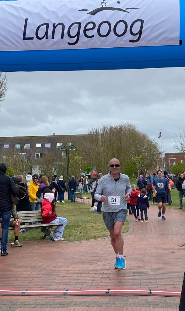 Walter Laum ist am Ostersonntag bei dem traditionellen Osterlauf auf Langeogg gestartet. Der 5-Kilometer Rundkurs auf Langeoog ist flach und führt von dem Kurzentrum aus dem Ort heraus zu den Salzwiesen. Diese flache Strecke ist für die 10 Kilometerstrecke zwei Mal zu durchlaufen. Walter konnte auf den gesamten 10 Kilometern seine gute Pace halten und überschritt die Ziellinie bei 54:58. Damit gewann Walter seine Altersklasse M60 und wurde im Gesamtklassement 56-ster.