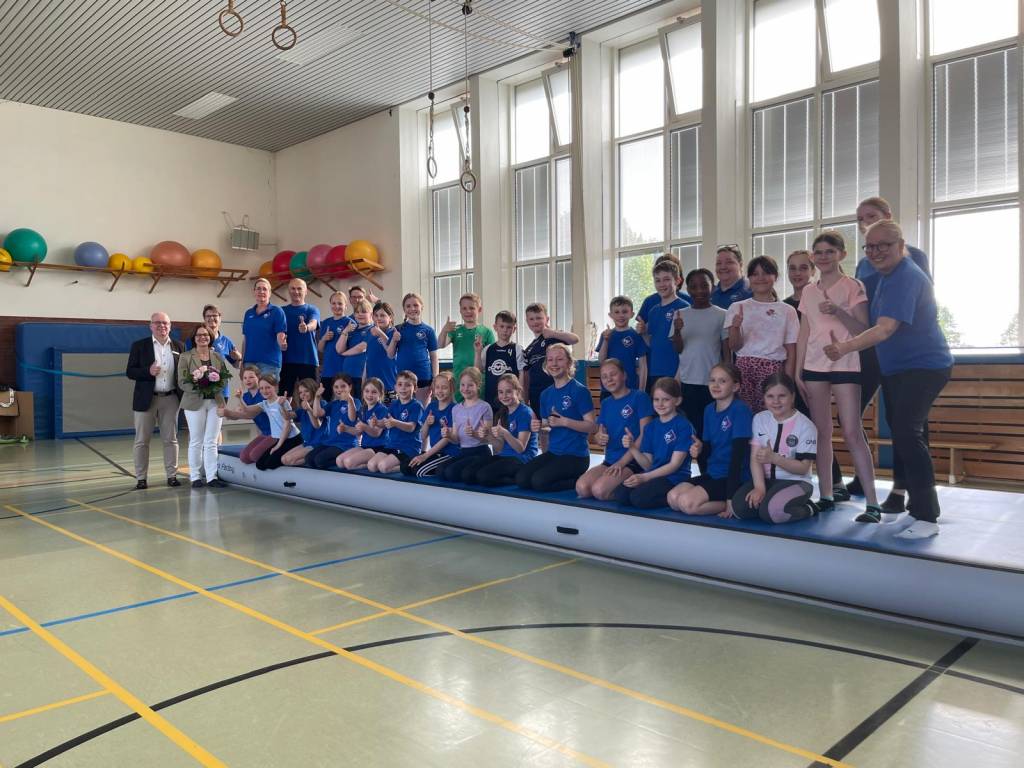 Turnen (08.05.2025) Ein Aitrack für die Turnabteilung Einen Grund zum Strahlen hatte der Turnnachwuchs, als die Vertreterin der Stiftung Sparkasse, Frau Dr. Patolla einen Airtrack als Spende übergeben hat.. Endlich können alle Gruppen der Turnabteilung damit trainieren. Wir sagen dazu herzlichen Dank.