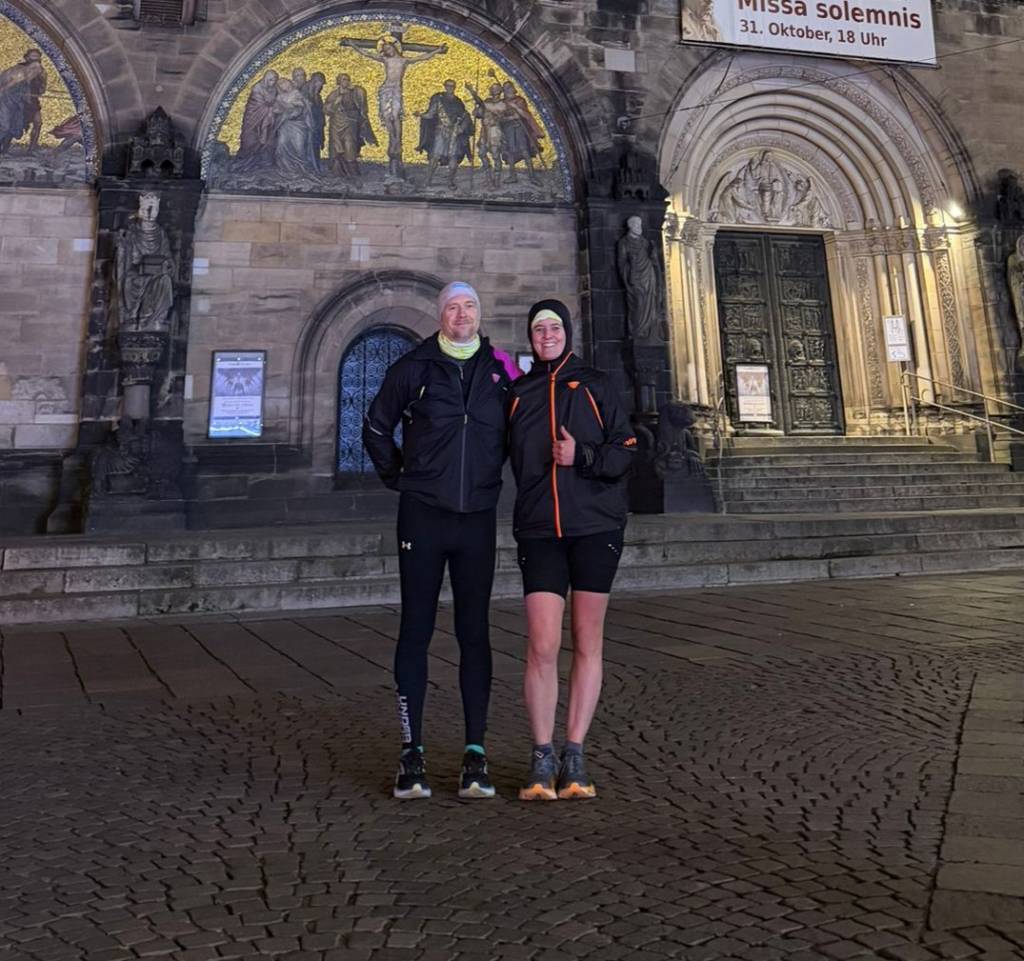 Am 31.10.2025 war es wieder so weit. Der dritte Dom zu Dom Ultra Marathon mit einer Länge von 56 Kilometern wurde durchgeführt. Der Start war wie immer in Verden und führte über mehrere kleine Ortschaften, wie Oiste, Blender, Thedinghausen, Riede und Kirchweyhe zum Bremer Dom. Die Herausforderung liegt bei dieser Veranstaltung nicht nur in der Strecke selbst, sonderen auch in der Navigation nach vorgegebenem GPS-Track und in der Selbstverpflegung. So hatte Wiebke entsprechend viel Trinken und Essen mit sich zu führen. Für die Oytenerin ist dieser Lauf aber bereits Routine, da sie bereits im letzten Jahr an dem Lauf teilgenommen hatte. Das Wetter war am Feiertag kalt, aber sehr freundlich. So passte alles hervorragend, die Vorbereitung, die Stimmung und eben das Wetter.